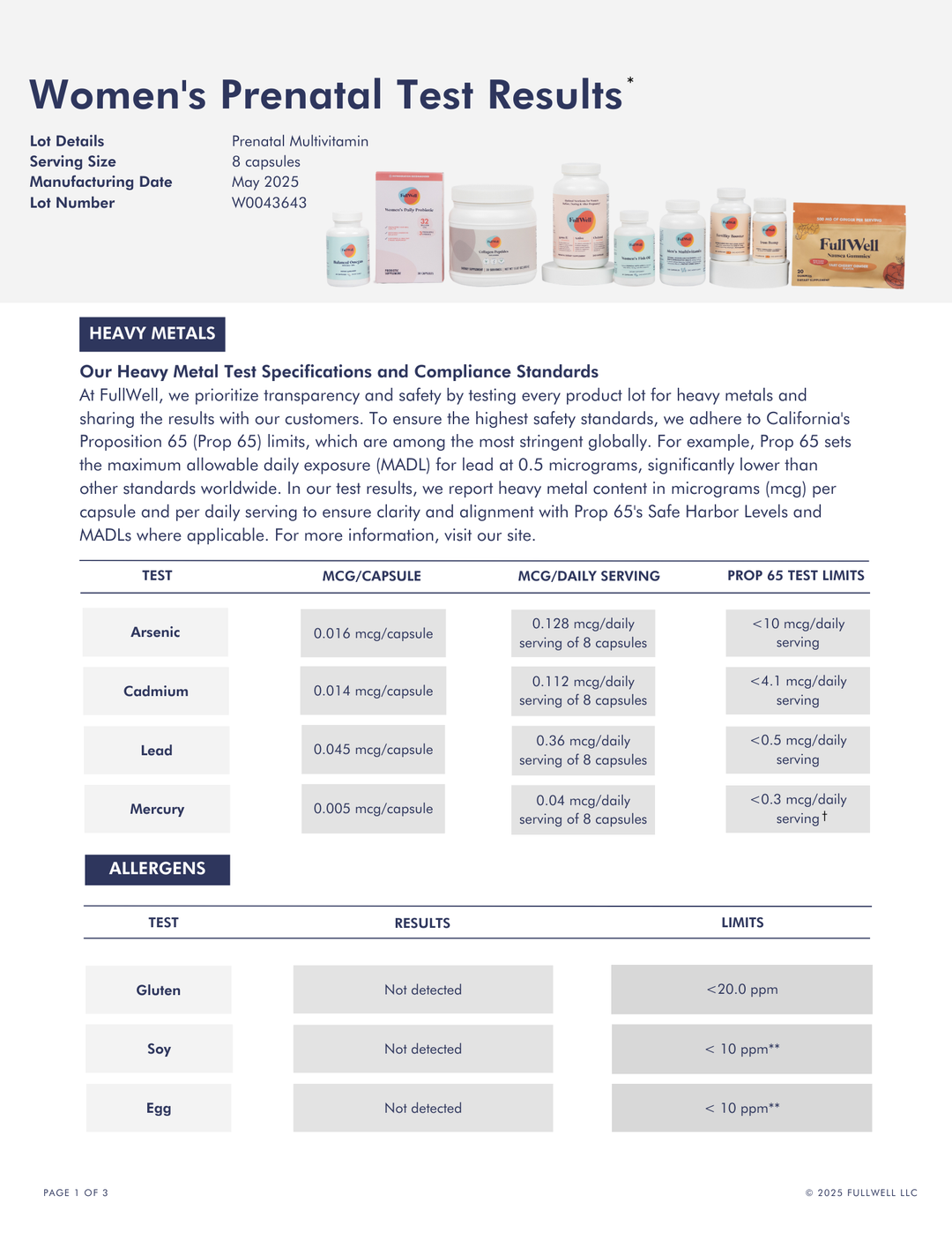 FullWell exceeds industry standards by using 3rd party independent testing for harmful contaminants - including heavy metals - on every single product we produce.