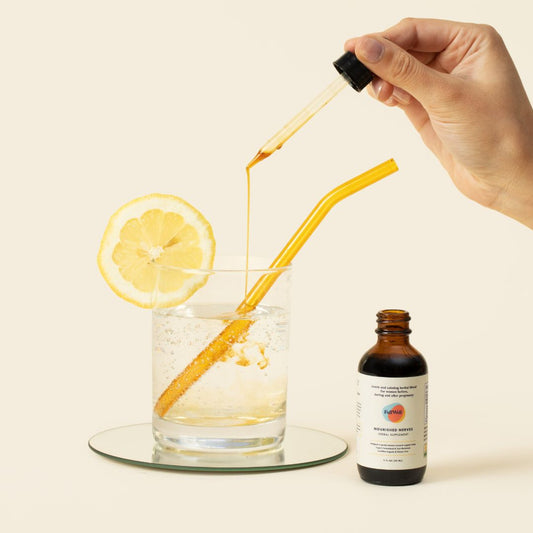 Mountain Rose makes a fantastic loose-leaf Organic Fecundi Tea with organic spearmint, lemon balm, nettle leaf, dandelion leaf, red raspberry leaf, oat straw, alfalfa, ginger, and lemon peel. Mountain Rose is an excellent source of consumer information in general, so I recommend checking out their blog if you’re interested in trying to create your own action formulas using their products. I highly suggest pairing their loose-leaf products with our Nourished Nerves formula for a massive bang for your buck in a single cup. Not only can that combo support your mood and overall relaxation, but it can also encourage a peaceful slumber as your body changes, and it becomes harder to get comfortable.