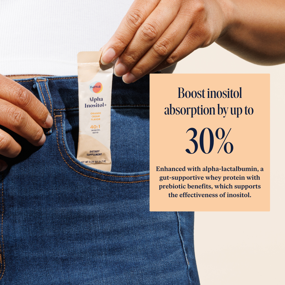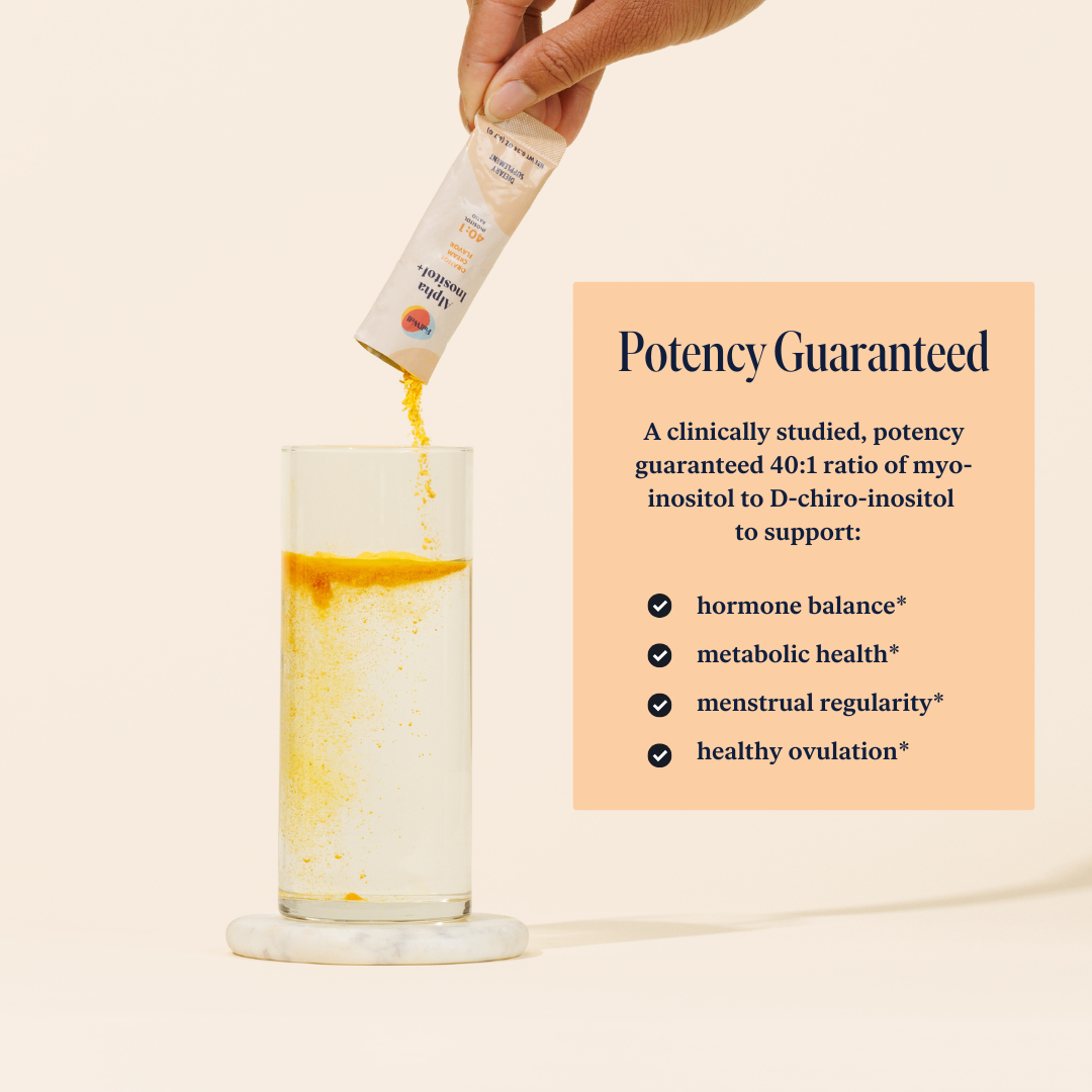 Alpha Inositol+ is the only inositol supplement that delivers guaranteed therapeutic dosing, with each batch backed by published third-party testing to verify purity, potency, and accurate inositol ratios. Formulated by a registered dietitian and reproductive health expert with 20+ years of clinical experience, Alpha Inositol+ provides the optimal 40:1 ratio of myo-inositol to D-chiro-inositol to support hormonal balance, ovarian function, and menstrual health.* It’s also enhanced with alpha-lactalbumin, a prebiotic whey protein shown to improve inositol absorption by up to 30%, making it more effective, especially for those who may not respond to inositol alone. Plus, it supports gut health, mood, and sleep, helping to promote whole-body balance.*