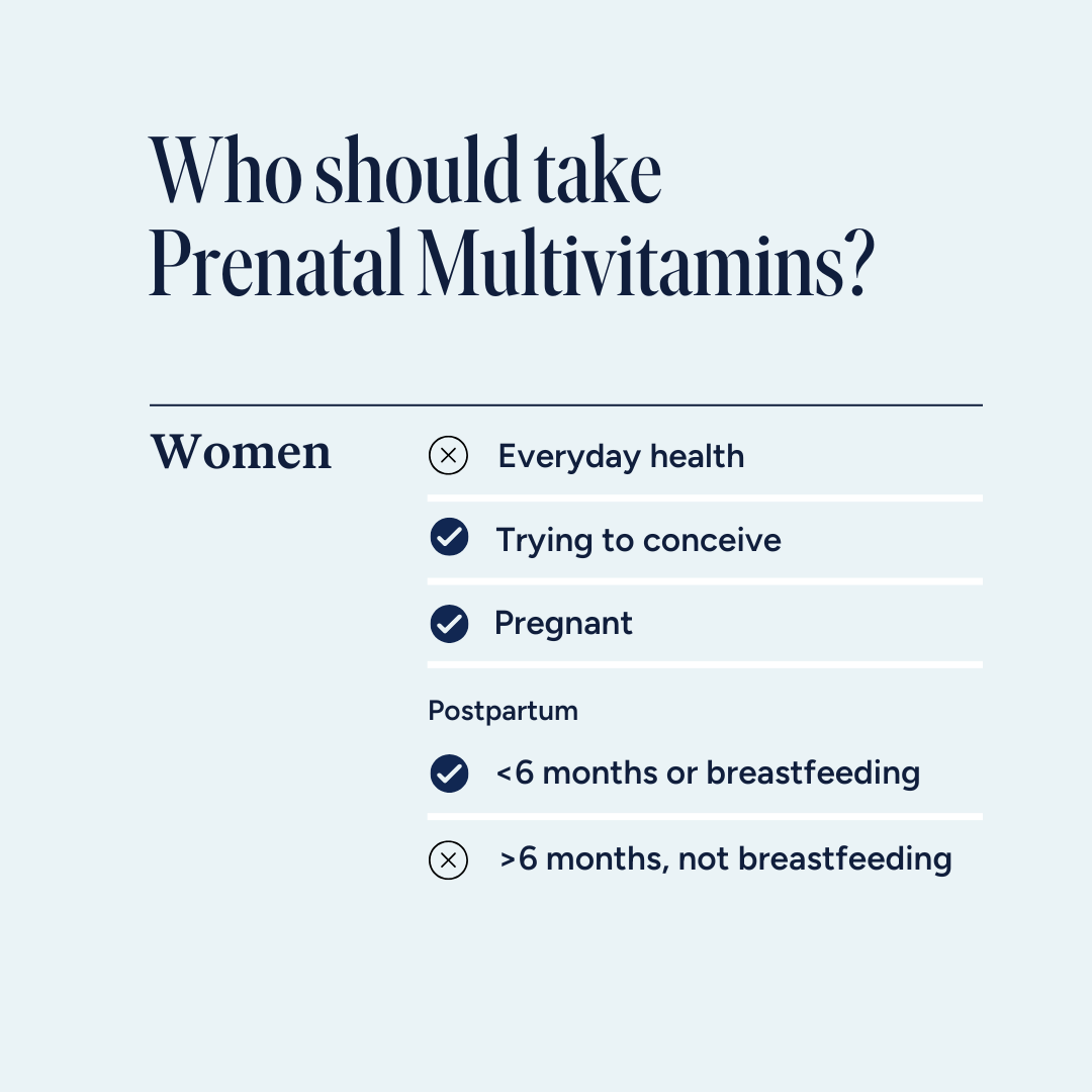 Our Women's Prenatal Multivitamin is formulated to provide optimal nutrition before, during, and after pregnancy using evidence-based forms and doses of essential vitamins and minerals.* Expert-formulated and OBGYN-recommended, it is packed with essential pregnancy nutrients commonly left out of most prenatals to support both mom and baby with the most comprehensive nutritional support.*